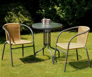 2 Seater Rattan Bistro Set. Wicker garden set guarantee & delivery. 4.5 out of 5 stars. The 70cm diameter table has an aluminium frame with the rattan weave machined around all pieces.