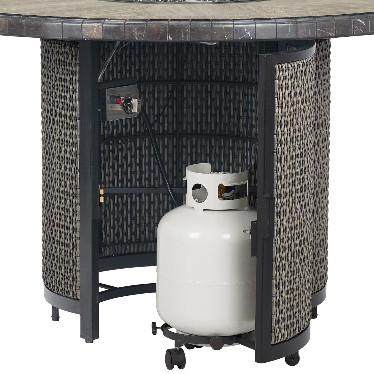 Prices may vary by location. The rectangular table top features a woven pattern similar to the backs of each chair. This item may be purchased as part of the full 7 piece dining set. Patio tables at the best price anywhere!