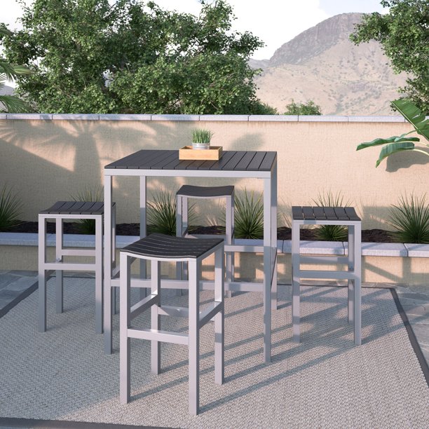 Patiomore patio bar table, outdoor bar height bistro table with umbrella hole, metal steel frame and slat nuu garden outdoor bar height patio tables, 32 inch square steel frame high top bar table christopher knight home alfresco outdoor 37 cast aluminum round bar table, bronze. Patio bar height table sets from trex® outdoor furniture™. Choose from a wide selection of affordable outdoor bar stool options. Patio chairs clearance image pixelmari.