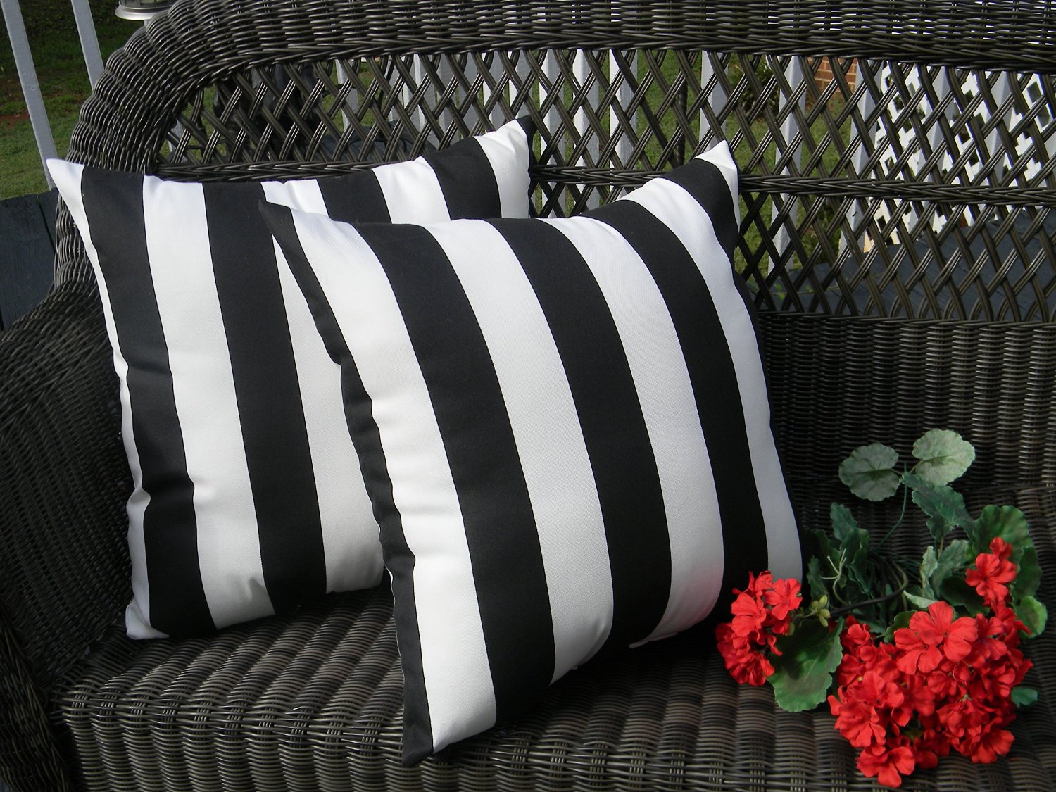 91 5% coupon applied at checkout save 5% with coupon Breakwater bay 2 piece deep seating striped indoor/outdoor sunbrella® dining chair cushion set in black/white, size 5.0 h x 25.0 w x 25.0 d in wayfair $ 243.99 this review was collected as part of a promotion. these slightly oversized patio chair cushions added just the right amount of chic. Onway outdoor pillow covers waterproof 18x18 set of 2 decorative linen throw pillow cover black and white striped outdoor pillows for patio furniture and sunbrella.