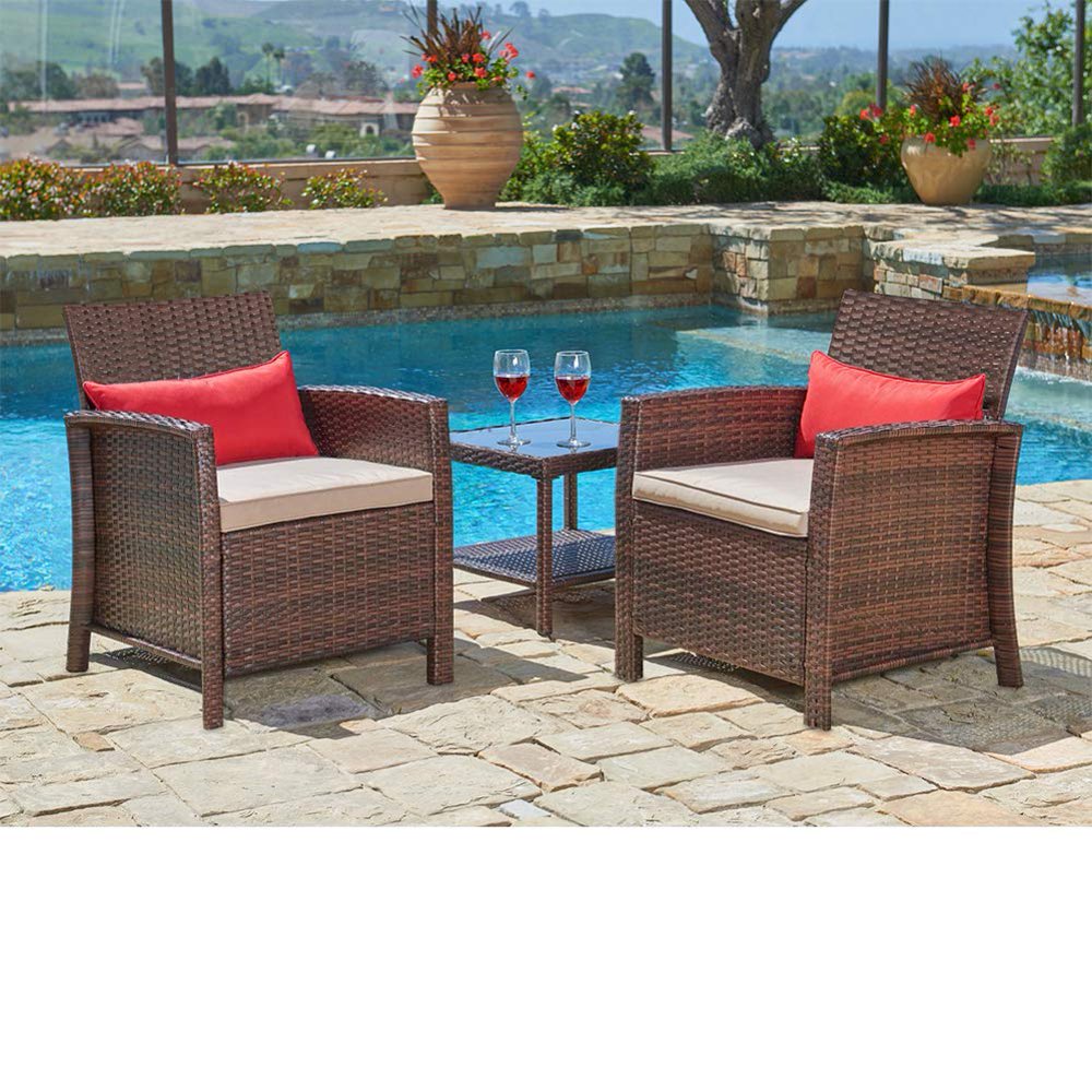 Tangkula 3 piece patio furniture set wicker rattan outdoor patio conversation set with 2 cushioned chairs & end table backyard garden lawn chat set chill time modern tangkula 3 piece patio furniture set wicker rattan outdoor. Patio wicker rattan dialogue bistro set furniture 3 pieces outdoor tavern set 2 chairs and coffee table with glass top. This review of 3 piece patio sets under $100 will help you to narrow down the search on nailing the perfect furniture for any backyard or balcony. Enjoy free shipping on most stuff, even big stuff.