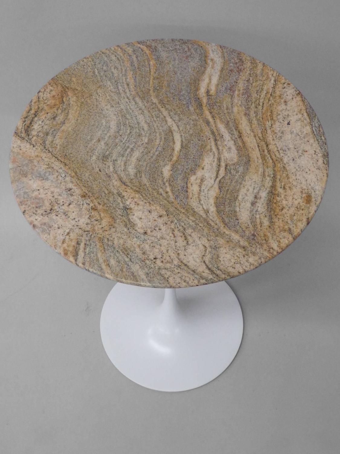 The best table bases for granite tops are made of steel tubing and cast iron as it would take lots of pressure to crush them. Granite top end table, round tables, hairpin steel legs, patio tables. Counter top height, 36 to 42 inches.