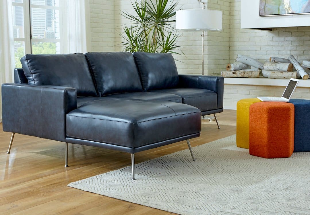 Mid Century Leather Sectional. Mid century modern inspired matilda 101 sectional sofa. Leather match upholstery on hardwood frame with high density foam filling. The milton sofa completes you home's decor with exquisite style.