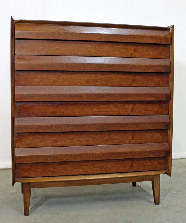 Vintage Mid-Century Modern Sculpted Walnut Tall Chest ...