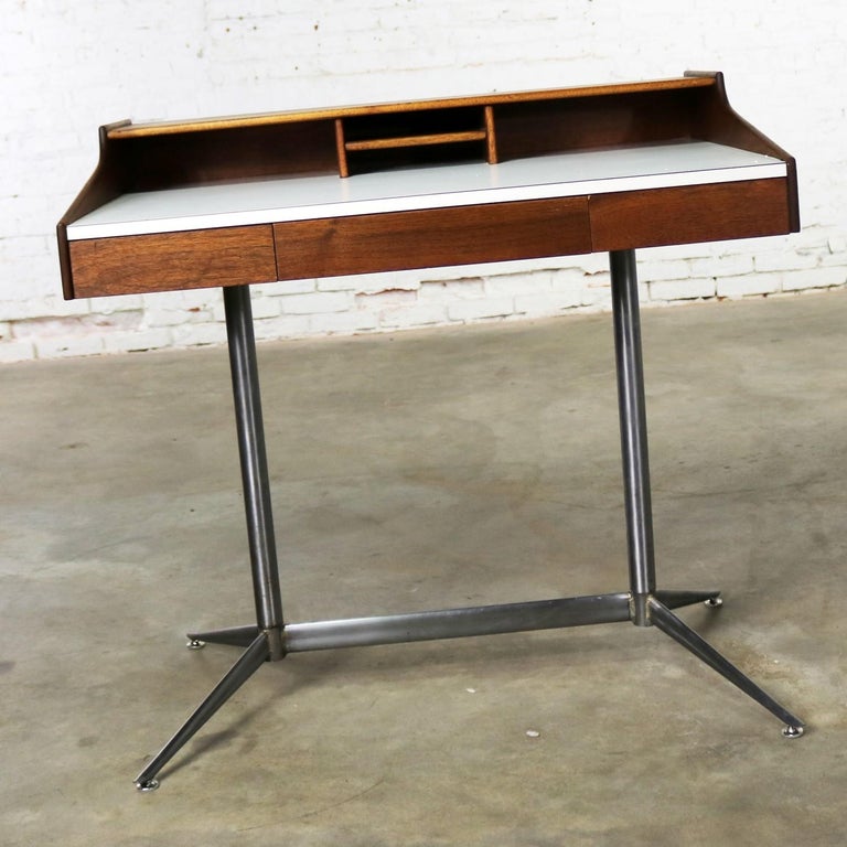 Mid Century Modern Writing Desk. Whether it's to place your vintage typewriter or get some serious writing done, you need a neat little corner that can offer some inspiration. Walnut mid century modern writing desk. Create a home office with a desk that will suit your work style.