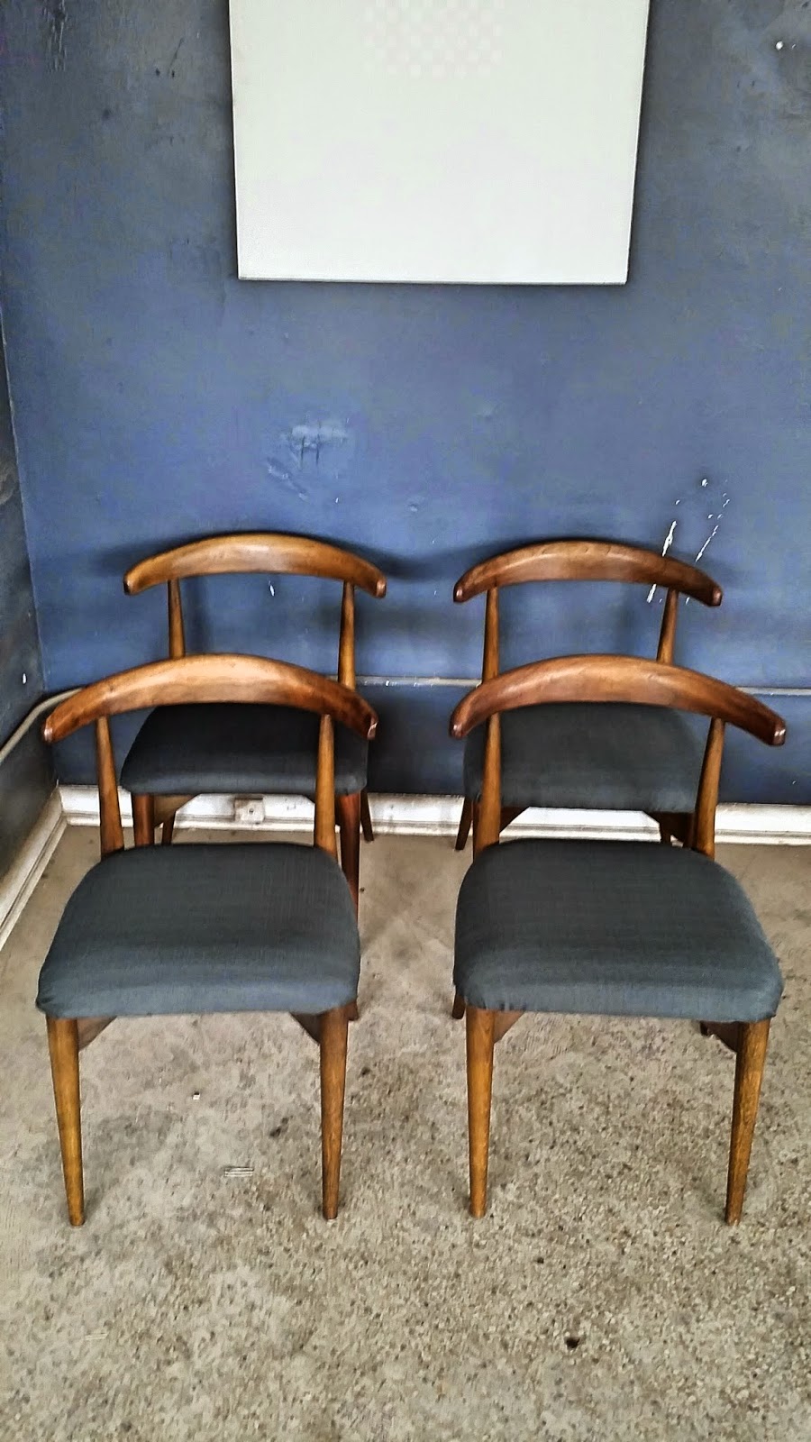 Mid century modern dining chair set vintage wood upholstered danish 60s side lot. 49 wide x 49 deep x 29.5 inches high; See low price in cart.