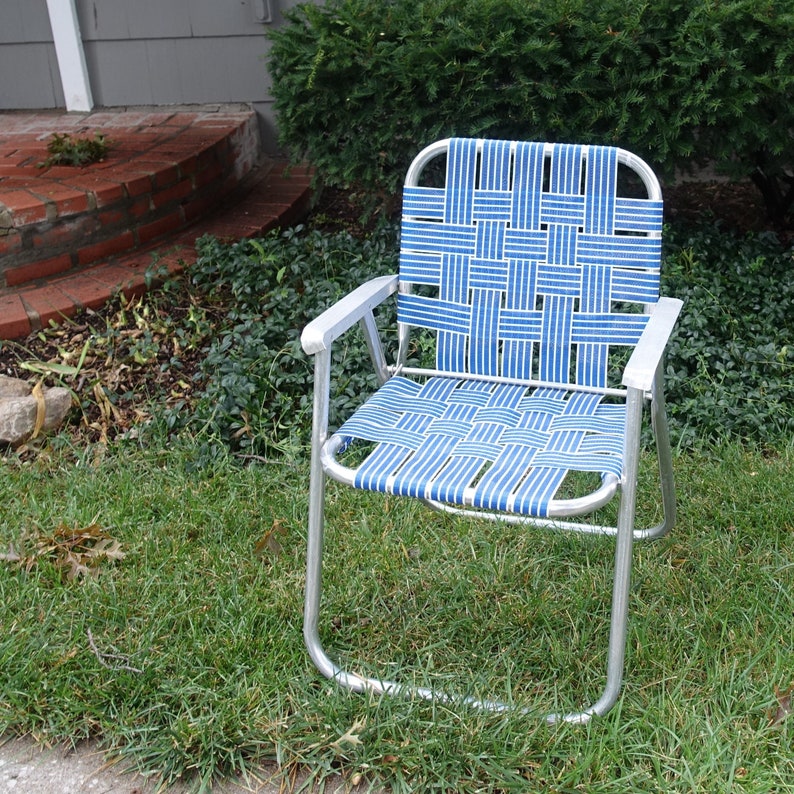 These classic webbed folding chairs are ideal outdoor furniture because they?re durable, portable, and easily. Summers are for lounging on the patio in a comfy chair. Vintage aluminum low profile beach webbed folding lawn chair yard patio retro. My dad's design was a slightly more in 2016 (29 years later), my friend roland posted this picture of the wide lawnchair, still intact.