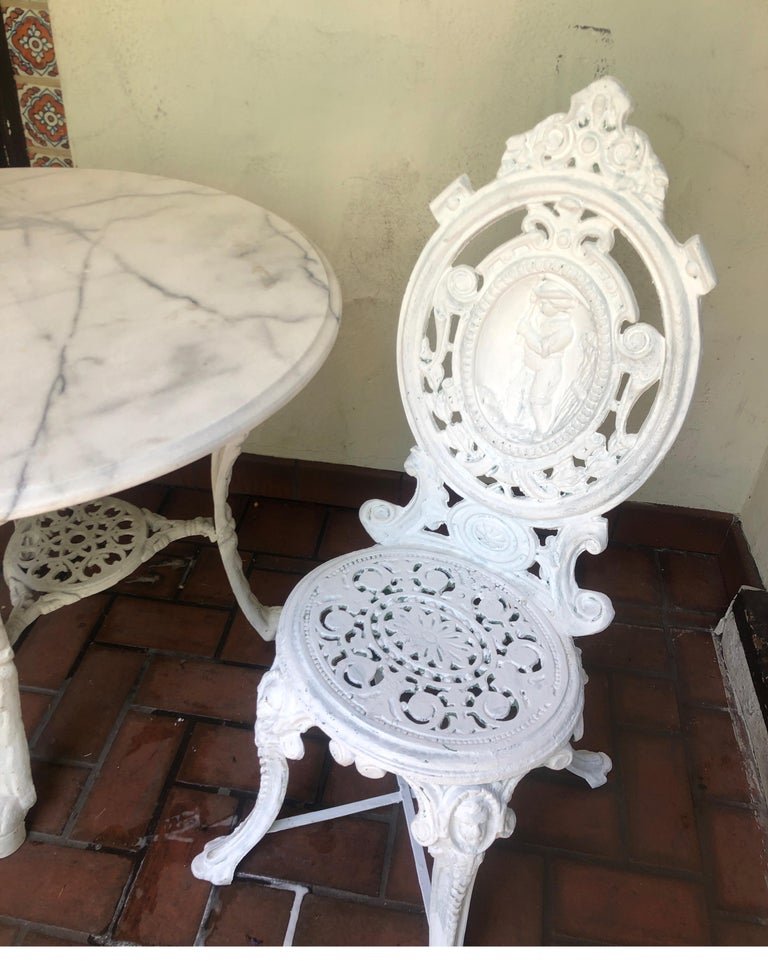 White Cast Iron Table And Chairs. Vintage worn white wrought iron patio table with chippy paint funoldstuff 5 out of 5 stars (6,063) $ 70.00. Get outdoors for some landscaping or spruce up your garden! 1.5 inch patio furniture seating glides/feet/caps for wrought iron outdoor furniture easy to install replacement chair and table feet glide protectors/cap (white,48 pieces) 4.1 out of 5 stars.